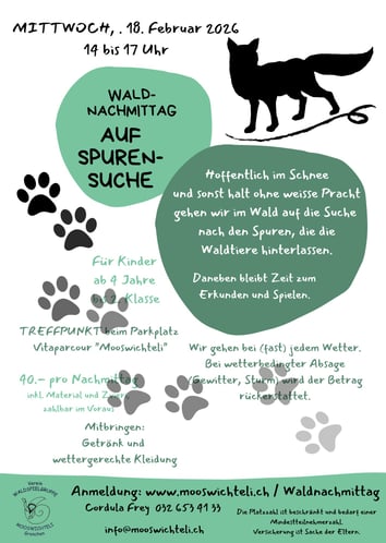 Anmeldungen bis spätestens Montag vor dem Waldnachmittag um 18 Uhr.